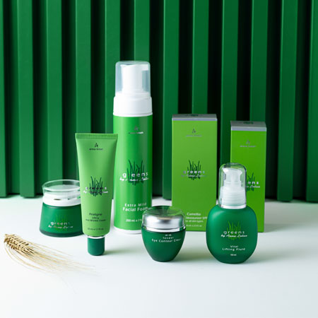 Seria Greens combină ingrediente precum:germeni de grâu, peptide, oligoelemente, minerale, fosfolipide, antioxidanți, acizi fructiferi și agenți hidratanți, ce oferă pielii efect miorelaxant, de lifting, contribuind deasemenea la hidratarea intensă și refacerea barierei hidrolipidice a pielii.